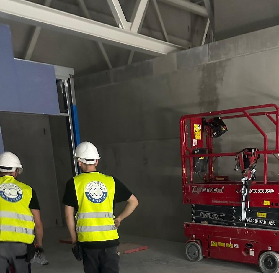 Naš tim izvodi suhu gradnju (Knauf): pregradne zidove, spuštene stropove, akustičke i tehničke obloge – stvarajući funkcionalne i fleksibilne prostore unutar novih proizvodnih i uredskih hala.